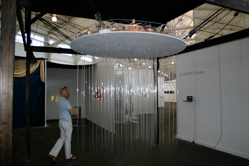 | Description | Suspended in the air, tiny translucent rods bend and sway in the light. Contact with the body causes the rod to illuminate and play sounds of water drops. As the body interacts with the sculpture a storm begins to build and fall based on the amount of movement by the participant. |
